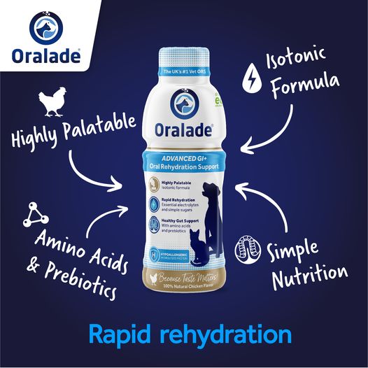 Oralade® GI+ is scientifically formulated to have the precise ratio of glucose and electrolytes necessary to activate and support the water and electrolyte absorption in your pet.