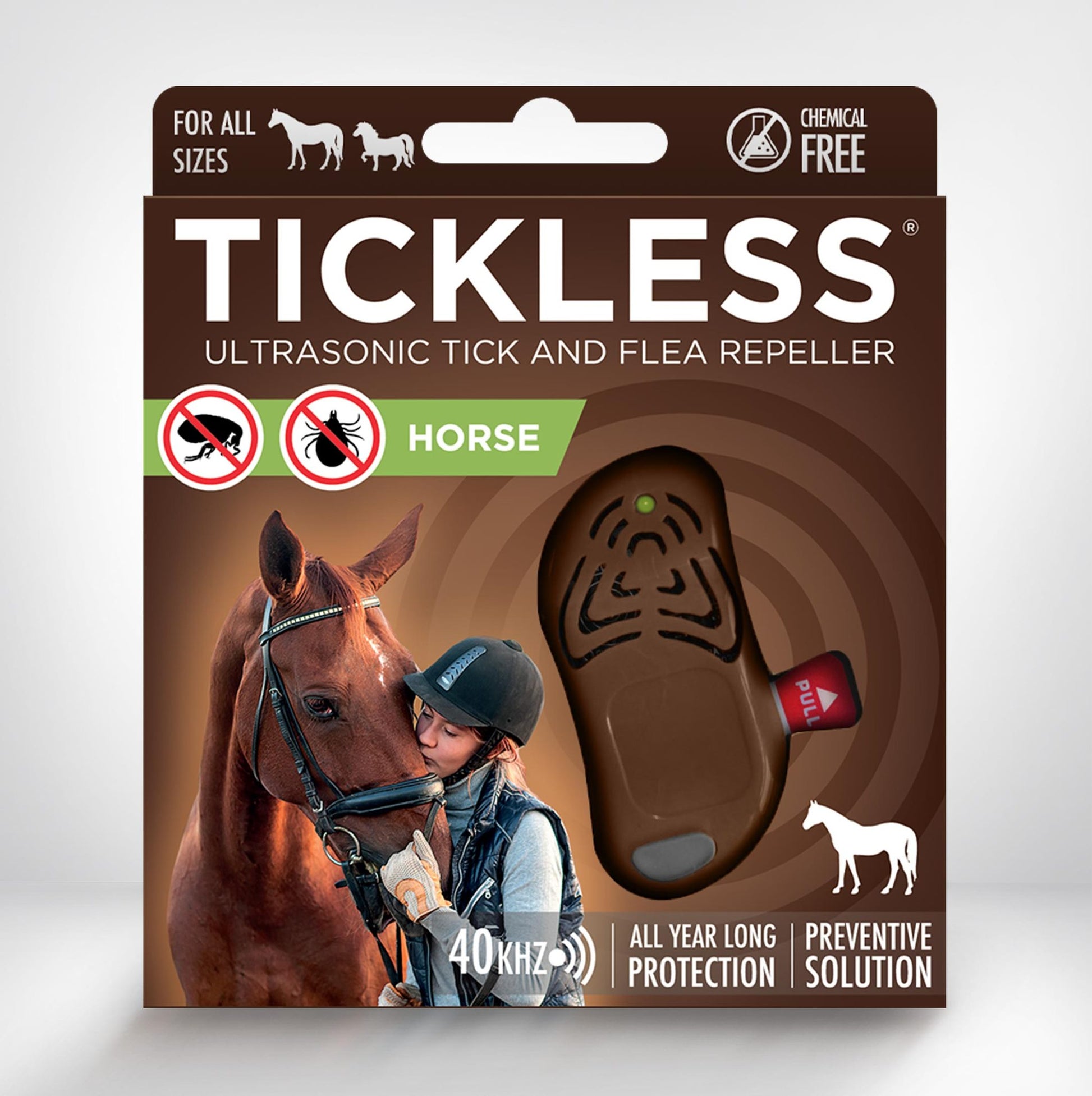 How to use: Fasten the device to the horse’s headstall or saddle, making sure to leave the device’s grid free. Remove the tab to activate the product. 4 green flashes will indicate that the device is powered on. You can verify its continued operation at any time by pressing the button and confirming that the LED flashes in response. At normal temperatures, the device can keep parasites away for 6-12 months after activation. To ensure its effectiveness, the device should remain affixed to the horse at all times. If you also wish to keep the stable free of ticks and fleas, use the TICKLESS Home device.