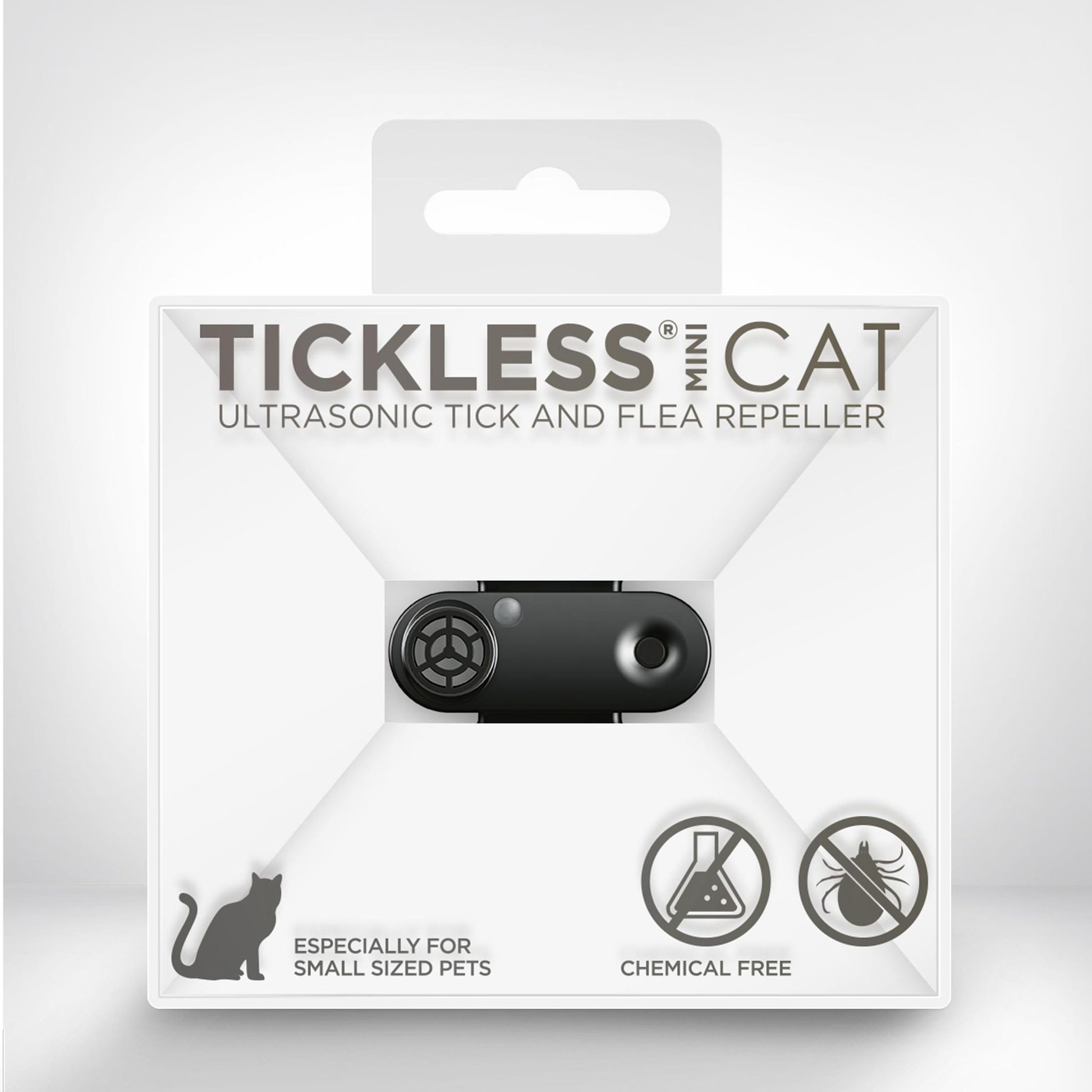 How to use: To start using TICKLESS MINI bathe your pet with a non-chemical tick & flea shampoo and remove any remaining parasites. Charge the device for at least 3 hours before first use. Pick a silicone band from the box and insert it into the side tab of device. Put the band and the device on the collar and pull the band under the collar. Insert silicone into the other side tab. When fixed well TICKLESS® stays securely on. To ensure its effectiveness, the device should remain affixed to the animal at all times. If you remove the animal’s collar at home, we recommend using our TICKLESS Home device.