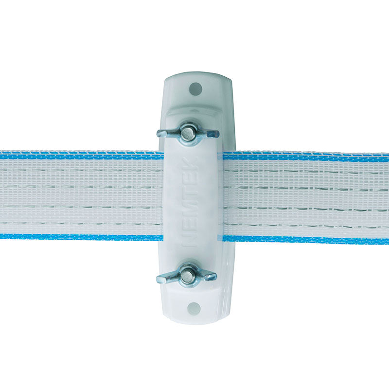 The End and Corner Post Insulator is fastened to your wooden posts and is used to secure the equine electric fence poly tape in place. It is used along the fence between the end and corner posts and when there is a change of direction. The robust design secures the tape in place. The horse now knows where the electric fence is situated and should tend to avoid it.