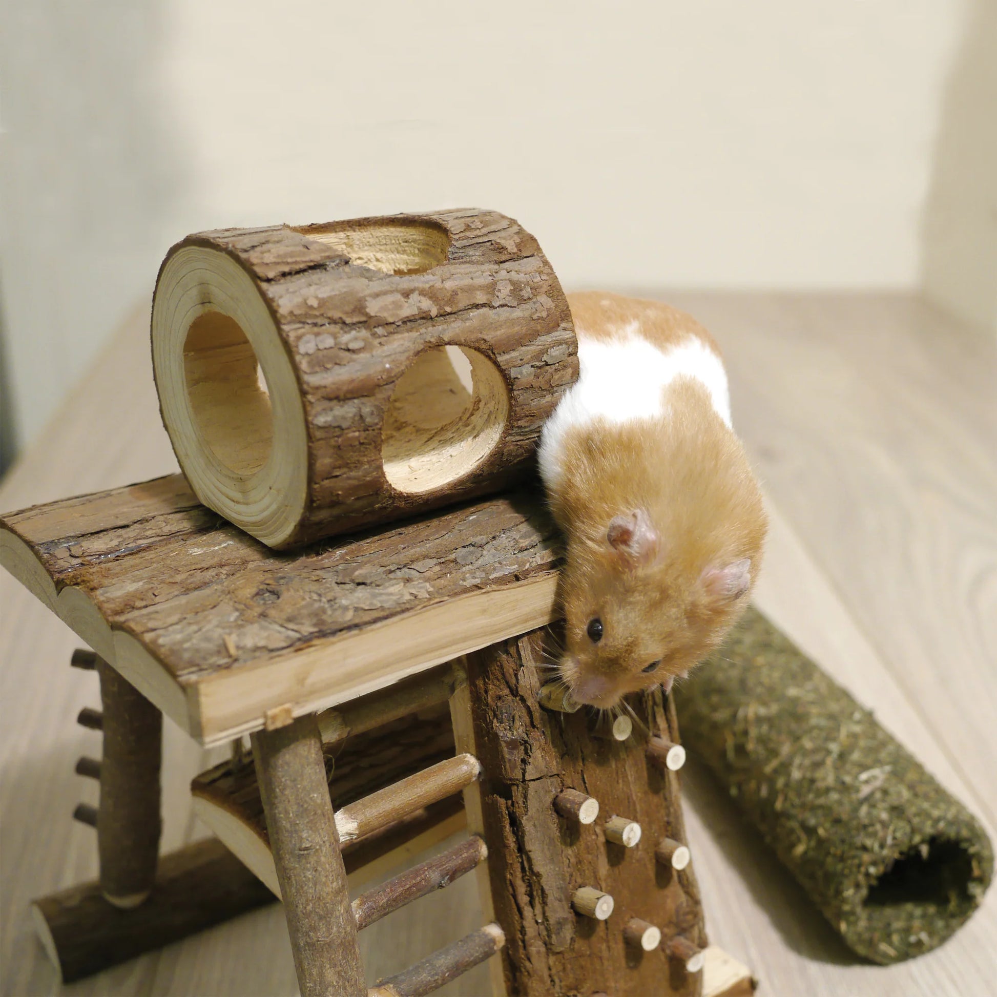 Ideal for small animals such as hamsters, gerbils and mice, this is a fabulous wooden activity centre for your pet that will provide hours of play fun and gnawing possibilities. It is not only great for your small animals teeth but also helps to prevent overgrown nails