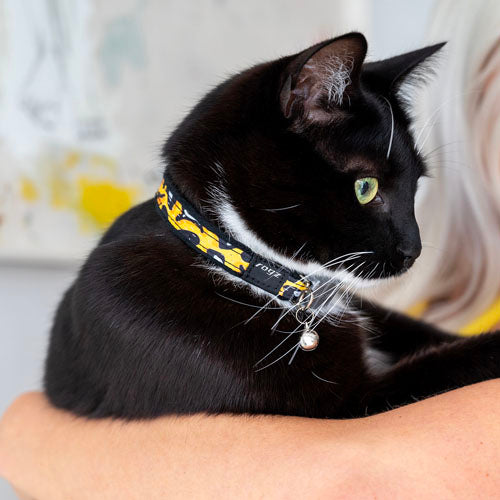 Rogz FashionCat Safety Collar is recommended for everyday use and identification. Featuring custom-designed African safari prints stitched onto soft plush webbing, this collar is ideal for cats who want to make a bold statement and love grabbing attention while they explore. The break-away safety buckle features three variable load settings that break open under enough strain from your cat, allowing your cat to safely escape out of the collar if necessary.